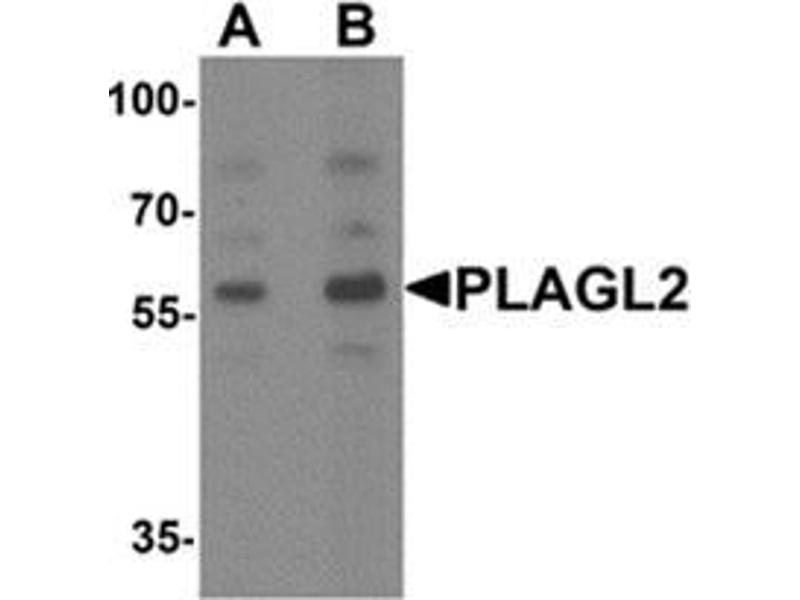 The PLAG (Pleiomorphic adenoma gene) family of zinc finger proteins include PLAG1, ZAC1 and PLAG-like 2 (PLAGL2). PLAG1 is the target gene for the pleiomorphic adenomas of the salivary gland. ZAC1 (PLAGL1) concomitantly controls apoptosis and cell cycle arrest through separate pathways. ZAC1 also acts as a transcriptional cofactor for nuclear receptors. PLAGL2 belongs to the krueppel C2H2-type zinc-finger protein family and contains 6 C2H2-type zinc fingers. It functions as a positive regulator of transcription and localizes to the nucleus. PLAGL2 is ubiquitously expressed with particular abundance in spleen, lung and testis, where it may be involved in cell cycle arrest and apoptosis of tumor cells.Synonyms: KIAA0198, Pleiomorphic adenoma-like protein 2, Zinc finger protein PLAGL2