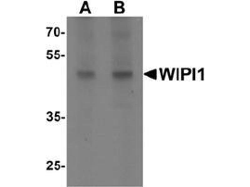 WIPI1 (WD repeat domain, phosphoinositide interacting-1), also known as WIPI1, ATG18 or WIPI49, is thought to play a role in autophagy and may regulate protein trafficking in certain recycling pathways. It contains three WD repeats and has a 7-bladed propeller structure with a conserved motif that facilitates its interaction with other proteins. WIPI1 localizes to cytoplasmic vesicles, endosomes, clathrin-coated vesicles and the trans-Golgi network. It is ubiquitously expressed with highest expression in heart, testis, placenta, pancreas and skeletal muscle. WIPI1 is upregulated in a variety of tumors, suggesting a role in carcinogenesis.Synonyms: Atg18 protein homolog, WD repeat domain phosphoinositide-interacting protein 1, WD40 repeat protein interacting with phosphoinositides of 49 kDa, WIPI1, WIPI49