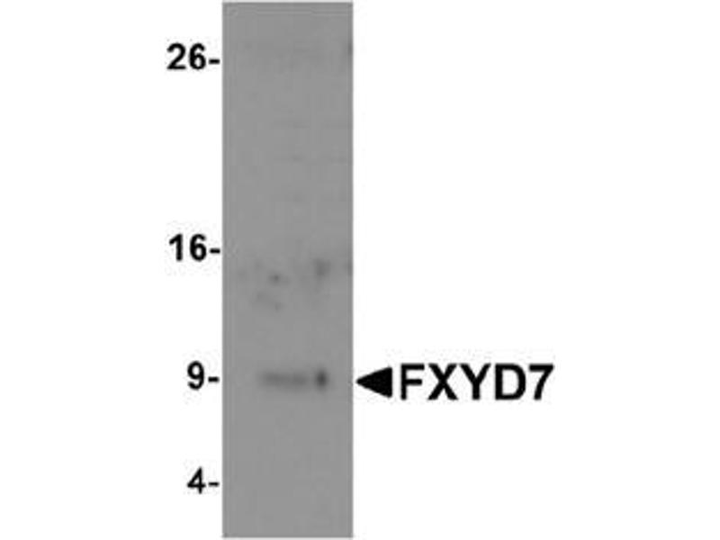 FXYD7 is a member of a family of small membrane proteins that share a 35-amino acid signature sequence domain, beginning with the sequence PFXYD and containing seven invariant and six highly conserved amino acids. The FXYD proteins are tissue-specific regulators of Na, K-ATPase, with FXYD7 initially identified as a brain-specific member. FXYD7 interacts with Na, K-ATPase through its transmembrane domain and is thought to influence the affinity of Na, K-ATPase for external K+ and Na+ ions. Other members of the FXDY family have similar functions: FXYD2 regulates the properties of Na, K-ATPase, while FXYD1 (phospholemman), FXYD3 (MAT-8), FXYD4 (CHIF), and FXYD5 (RIC) have been shown to induce channel activity in experimental expression systems.Synonyms: FXYD domain-containing ion transport regulator 7