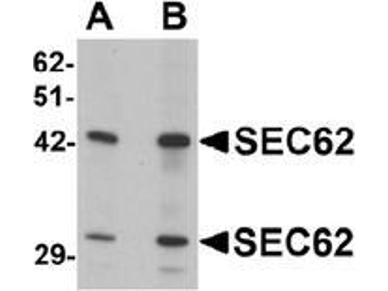 SEC62 is an integral membrane protein located in the rough endoplasmic reticulum (ER) and is part of the SEC61-SEC62-SEC63 complex that is the central component of the protein translocation apparatus of the ER membrane. It is speculated that SEC61-SEC62-SEC63 may perform post-translational protein translocation into the ER and might also perform the backward transport of ER proteins that are subject to the ubiquitin-proteasome-dependent degradation pathway. Silencing of this gene with RNAi dramatically reduced the migration and invasive potential of numerous tumor cell lines, suggesting that it may be an attractive target for therapy of various tumors.Synonyms: Translocation protein 1, Translocation protein SEC62