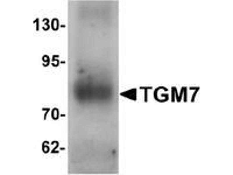 Transglutaminases (TGM) are a family of structurally and functionally related Ca2+-dependent enzymes (TGases) that stabilize protein assemblies through the formation of gamma-glutamyl-epsilon lysine crosslinks. TGases influence numerous biological processes, including blood coagulation, cell differentiation, fertilization and apoptosis. TGM7 belongs to the transglutaminase superfamily and is also thought to catalyze the cross-linking of proteins, often resulting in stabilization of protein assemblies. Little is known of the role of TGM7, but defects in the highly related protein TGM5 are associated with acral peeling skin syndrome.Synonyms: Protein-glutamine gamma-glutamyltransferase Z, TGZ, TGase Z