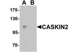 Calcium/calmodulin-dependent serine protein kinase (CASK) is a conserved multi-domain scaffolding protein involved in brain development, synapse formation, and establishment of cell polarity. CASKINs (CASK interacting protein ) interact with CASK and is thought to play a role in CASK function, specifically by coupling CASK to distinct downstream effectors. CASKIN2 is a multidomain protein containing six N-terminal ankyrin repeats, one SH3 domain, and two sterile alpha motif domains followed by a long proline-rich sequence and a short conserved C-terminal domain. It is expressed ubiquitously with highest levels present in fetal and adult liver tissue.Synonyms: CASKIN2, KIAA1139