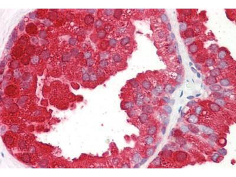 Usage: Peptide ELISA: antibody detection limit dilution 1:32000. Western blot: Approx 50kD band observed in Human Prostate lysates (calculated MW of 48.3kD according to NP_001127666.1). Recommended concentration: 0.01-0.03 μg/mL. -