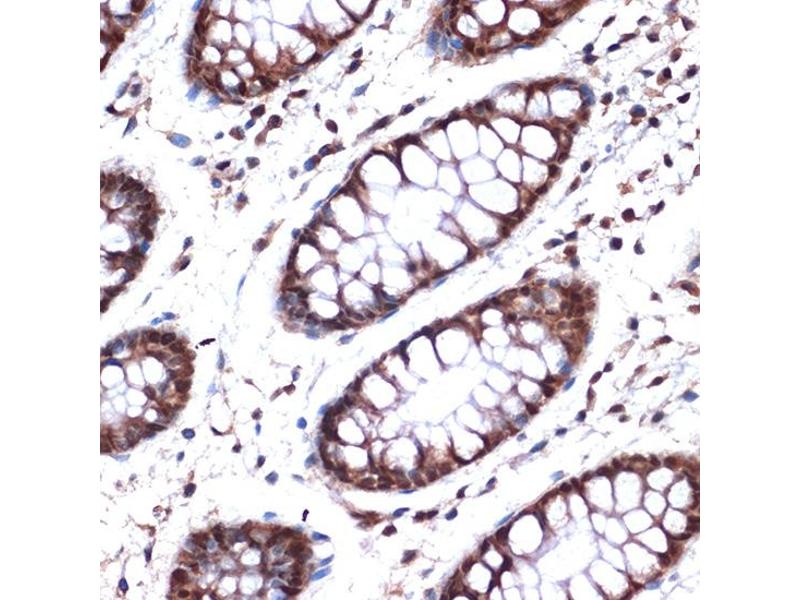 Nuclear pore complexes regulate the transport of macromolecules between the nucleus and cytoplasm. They are composed of at least 100 different polypeptide subunits, many of which belong to the nucleoporin family. Nucleoporins are glycoproteins found in nuclear pores and contain characteristic pentapeptide XFXFG repeats as well as O-linked N-acetylglucosamine residues oriented towards the cytoplasm. The protein encoded by this gene has three distinct domains: a N-terminal region containing a pore targeting and an RNA-binding domain domain, a central region containing multiple zinc finger motifs, and a C-terminal region containing multiple XFXFG repeats. Alternative splicing results in multiple transcript variants of this gene. [provided by RefSeq, May 2013],HNUP153, N153,Epigenetics & Nuclear Signaling,Nuclear Receptor Signaling,Signal Transduction,NUP153