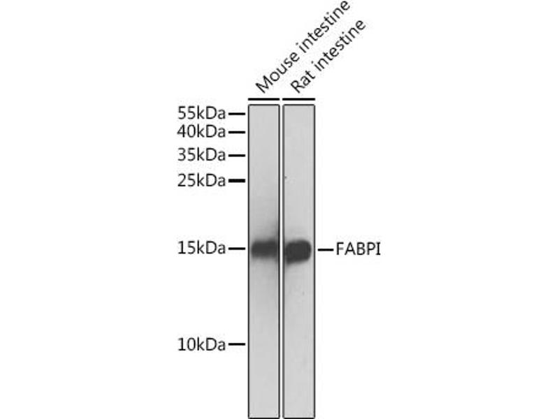 The intracellular fatty acid-binding proteins (FABPs) belong to a multigene family with nearly twenty identified members. FABPs are divided into at least three distinct types, namely the hepatic-, intestinal- and cardiac-type. They form 14-15 kDa proteins and are thought to participate in the uptake, intracellular metabolism and/or transport of long-chain fatty acids. They may also be responsible in the modulation of cell growth and proliferation. Intestinal fatty acid-binding protein 2 gene contains four exons and is an abundant cytosolic protein in small intestine epithelial cells. This gene has a polymorphism at codon 54 that identified an alanine-encoding allele and a threonine-encoding allele. Thr-54 protein is associated with increased fat oxidation and insulin resistance.,FABP2,FABPI,I-FABP,Cancer,Signal Transduction,Cell Biology & Developmental Biology,Endocrine & Metabolism,Lipid Metabolism,Stem Cells,Cardiovascular,Lipids,Fatty Acids,FABP2