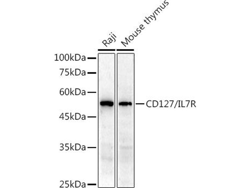 The protein encoded by this gene is a receptor for interleukin 7 (IL7). The function of this receptor requires the interleukin 2 receptor, gamma chain (IL2RG), which is a common gamma chain shared by the receptors of various cytokines, including interleukins 2, 4, 7, 9, and 15. This protein has been shown to play a critical role in V(D)J recombination during lymphocyte development. Defects in this gene may be associated with severe combined immunodeficiency (SCID). Alternatively spliced transcript variants have been found.,IL7R,CD127,CDW127,IL-7R-alpha,IL7RA,ILRA,Immunology & Inflammation,CD markers,Cytokines,Interleukins,Cell Intrinsic Innate Immunity Signaling Pathway,Stem Cells,Hematopoietic Progenitors,IL7R