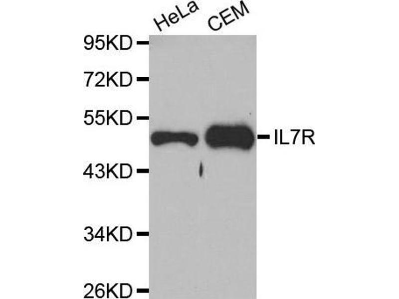L’anticorps Lapin Polyclonal anti-IL7R a été validé pour WB. Il convient pour détecter IL7R dans des échantillons de Humain.