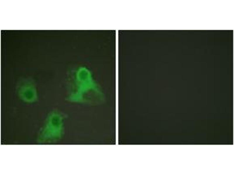 - The antibody was purified from rabbit antiserum by affinity-chromatography using phospho peptide. The antibody against non-phospho peptide was removed by chromatography using corresponding non-phospho peptide.