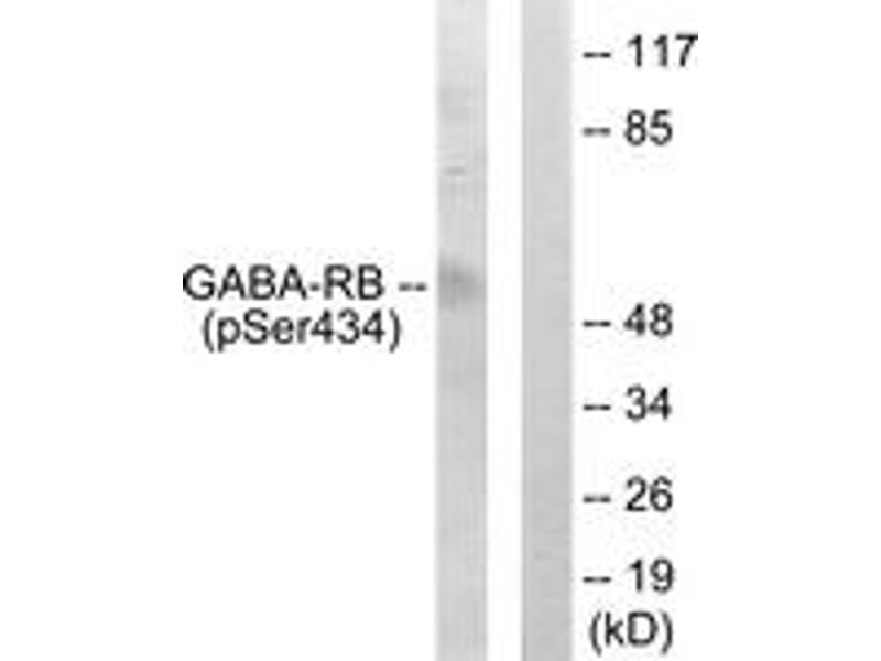 GABA-RB (Phospho-Ser434) Antibody detects endogenous levels of GABA-RB only when phosphorylated at Ser434.
