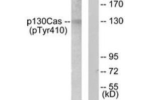 p130 Cas (Phospho-Tyr410) Antibody detects endogenous levels of p130 Cas only when phosphorylated at Tyr410.