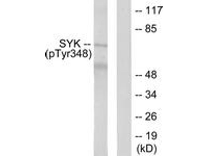 SYK (Phospho-Tyr348) Antibody detects endogenous levels of SYK only when phosphorylated at Tyr348.