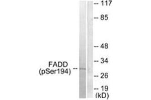 FADD (Phospho-Ser194) Antibody detects endogenous levels of FADD only when phosphorylated at Ser194.