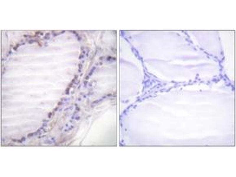 Fos (Phospho-Ser362) Antibody detects endogenous levels of Fos only when phosphorylated at Ser362.