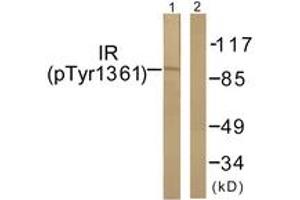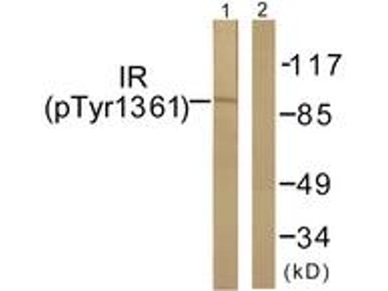 IR (Phospho-Tyr1361) Antibody detects endogenous levels of IR only when phosphorylated at Tyr1361.