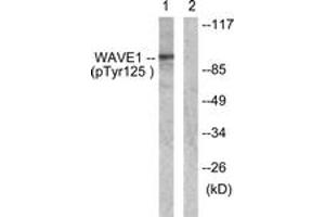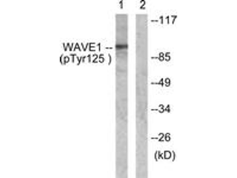 WAVE1 (Phospho-Tyr125) Antibody detects endogenous levels of WAVE1 only when phosphorylated at Tyr125.