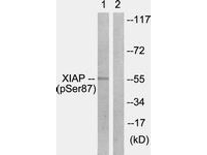 XIAP (Phospho-Ser87) Antibody detects endogenous levels of XIAP only when phosphorylated at Ser87.