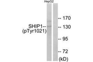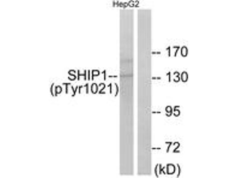 SHIP1 (Phospho-Tyr1021) Antibody detects endogenous levels of SHIP1 only when phosphorylated at Tyr1021.