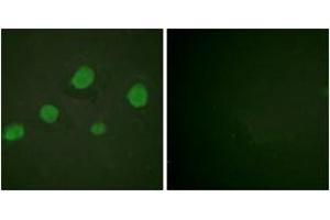 GATA3 (Phospho-Ser308) Antibody detects endogenous levels of GATA3 only when phosphorylated at Ser308.