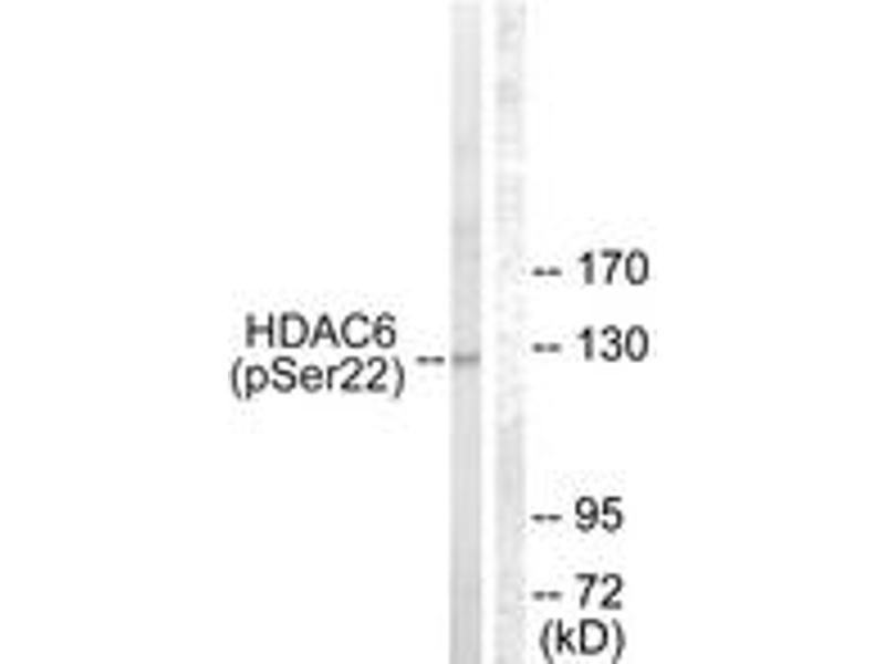HDAC6 (Phospho-Ser22) Antibody detects endogenous levels of HDAC6 only when phosphorylated at Ser22.