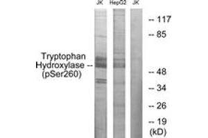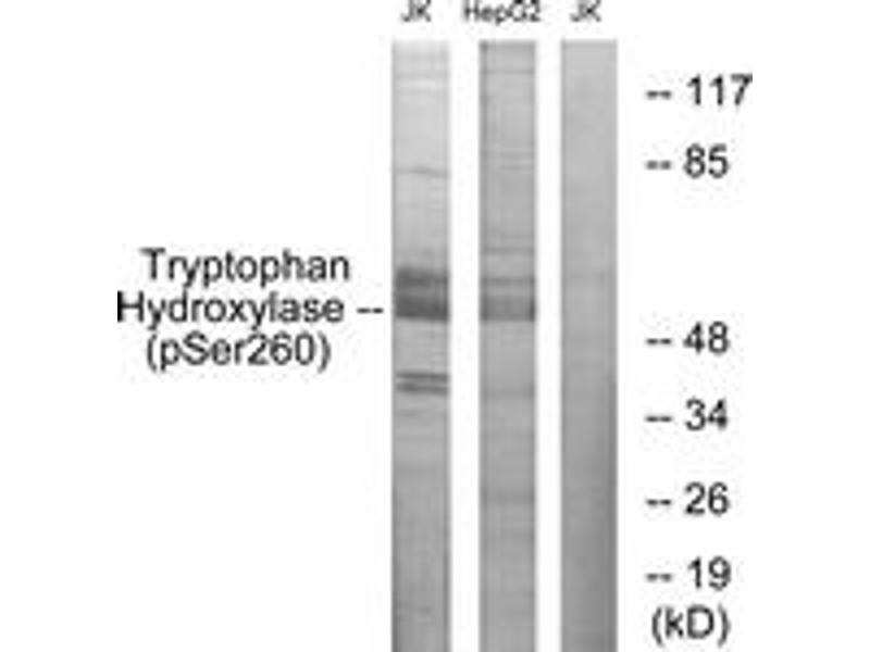 Tryptophan Hydroxylase (Phospho-Ser260) Antibody detects endogenous levels of Tryptophan Hydroxylase only when phosphorylated at Ser260.