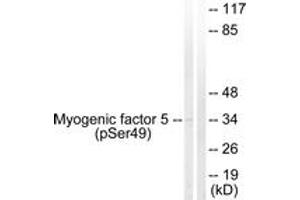 - The antiserum was produced against synthesized peptide derived from human Myogenic Factor 5 around the phosphorylation site of Ser49.
