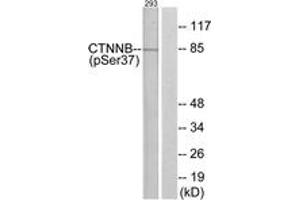 Catenin-beta (Phospho-Ser37) Antibody detects endogenous levels of Catenin-beta only when phosphorylated at Ser37.