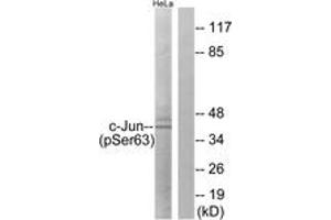 c-Jun (Phospho-Ser63) Antibody detects endogenous levels of c-Jun only when phosphorylated at Ser63.