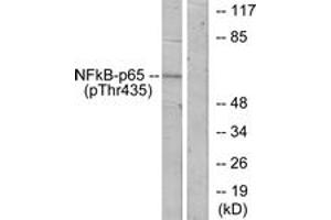 NF-kappaB p65 (Phospho-Thr435) Antibody detects endogenous levels of NF-kappaB p65 only when phosphorylated at Thr435.