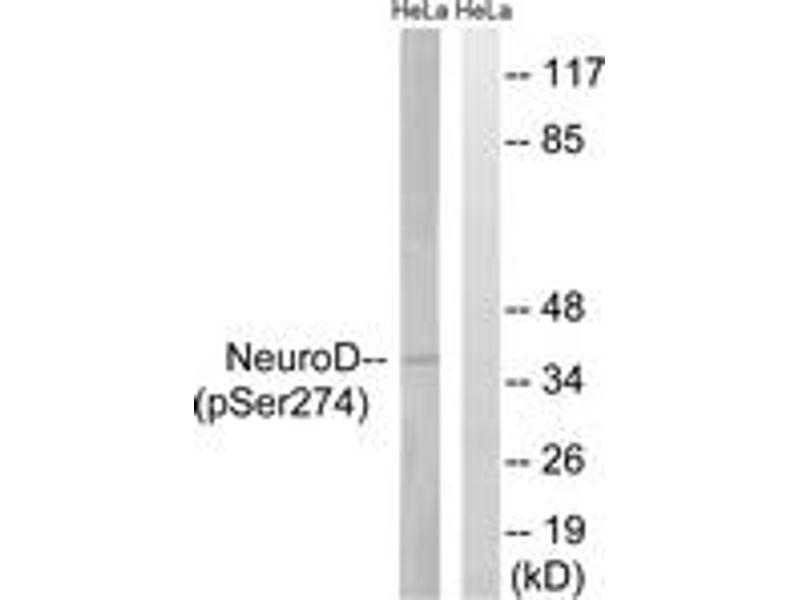 Neuro D (Phospho-Ser274) Antibody detects endogenous levels of Neuro D only when phosphorylated at Ser274.