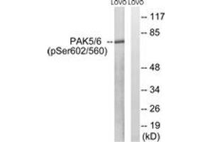 PAK5/6 (Phospho-Ser602/Ser560) Antibody detects endogenous levels of PAK5/6 only when phosphorylated at Ser602/560.