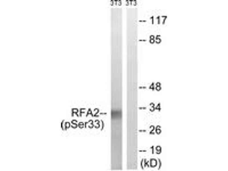 RFA2 (Phospho-Ser33) Antibody detects endogenous levels of RFA2 only when phosphorylated at Ser33.