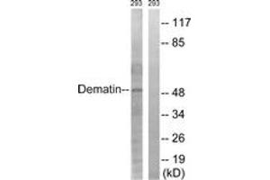 - The antiserum was produced against synthesized peptide derived from human Dematin.