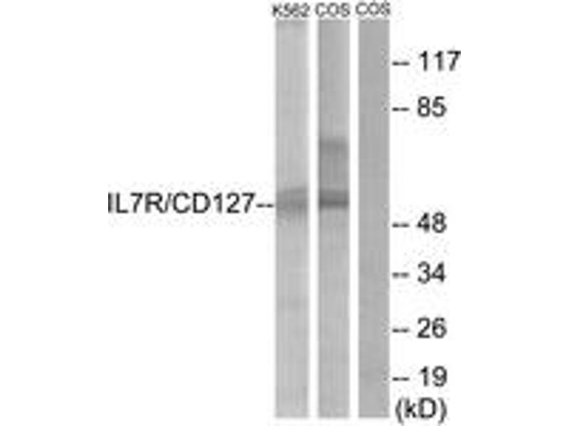 - The antiserum was produced against synthesized peptide derived from human IL-7R/CD127.
