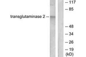 Transglutaminase 2 Antibody detects endogenous levels of total Transglutaminase 2 protein.