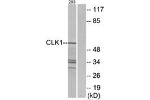 CLK1 Antibody detects endogenous levels of total CLK1 protein.