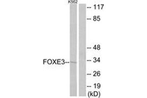 FOXE3 Antibody detects endogenous levels of total FOXE3 protein.