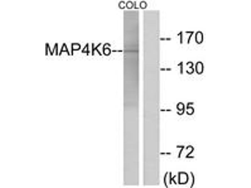 - The antiserum was produced against synthesized peptide derived from human MAP4K6.