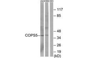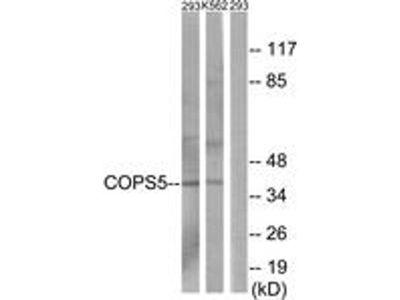 COPS5 Antibody detects endogenous levels of total COPS5 protein.