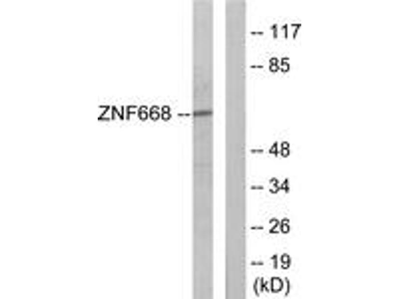 - The antiserum was produced against synthesized peptide derived from human ZNF668.