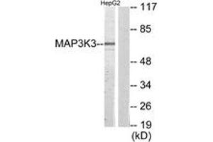 - The antiserum was produced against synthesized peptide derived from human MAP3K3.