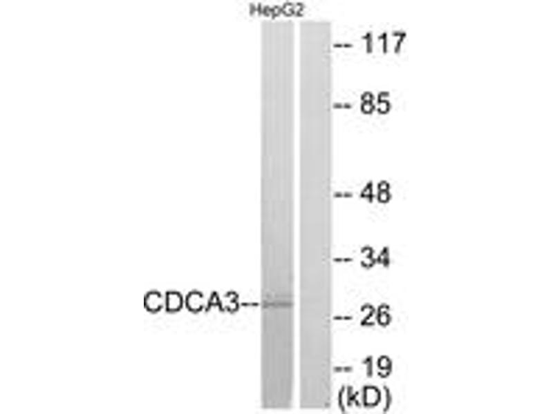 - The antiserum was produced against synthesized peptide derived from human CDCA3.