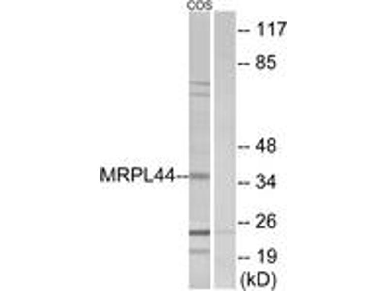 - The antiserum was produced against synthesized peptide derived from human MRPL44.