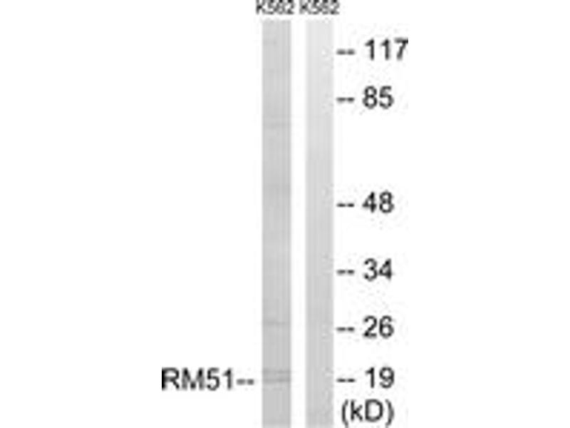 - The antiserum was produced against synthesized peptide derived from human MRPL51.