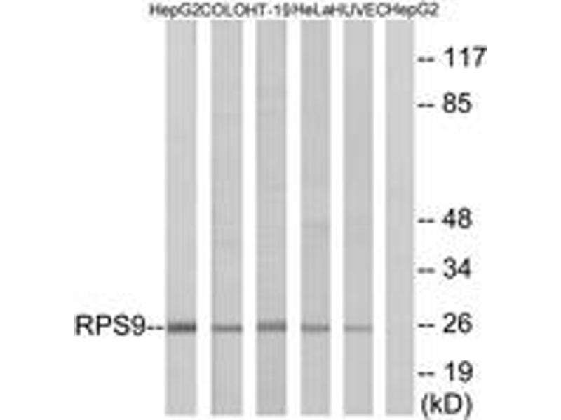 - The antiserum was produced against synthesized peptide derived from human RPS9.