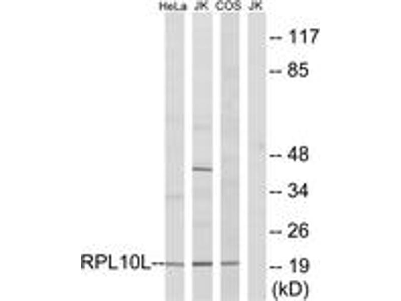 - The antiserum was produced against synthesized peptide derived from human RPL10L.