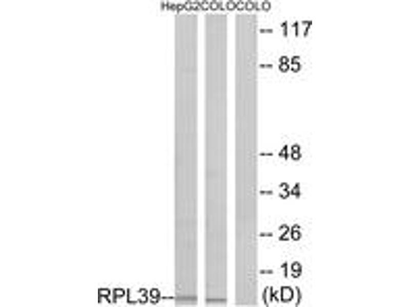 - The antiserum was produced against synthesized peptide derived from human RPL39.