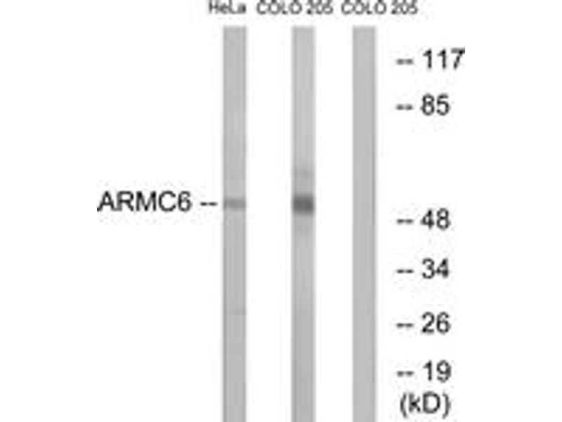 - The antiserum was produced against synthesized peptide derived from human ARMC6.