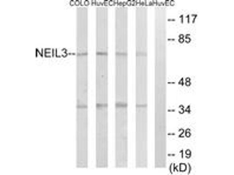 - The antiserum was produced against synthesized peptide derived from human NEIL3.