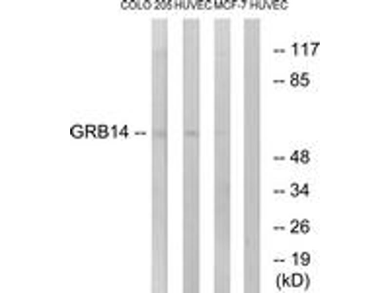- The antiserum was produced against synthesized peptide derived from human GRB14.