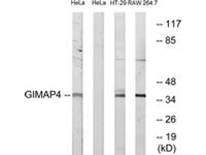 - The antiserum was produced against synthesized peptide derived from human GIMAP4.